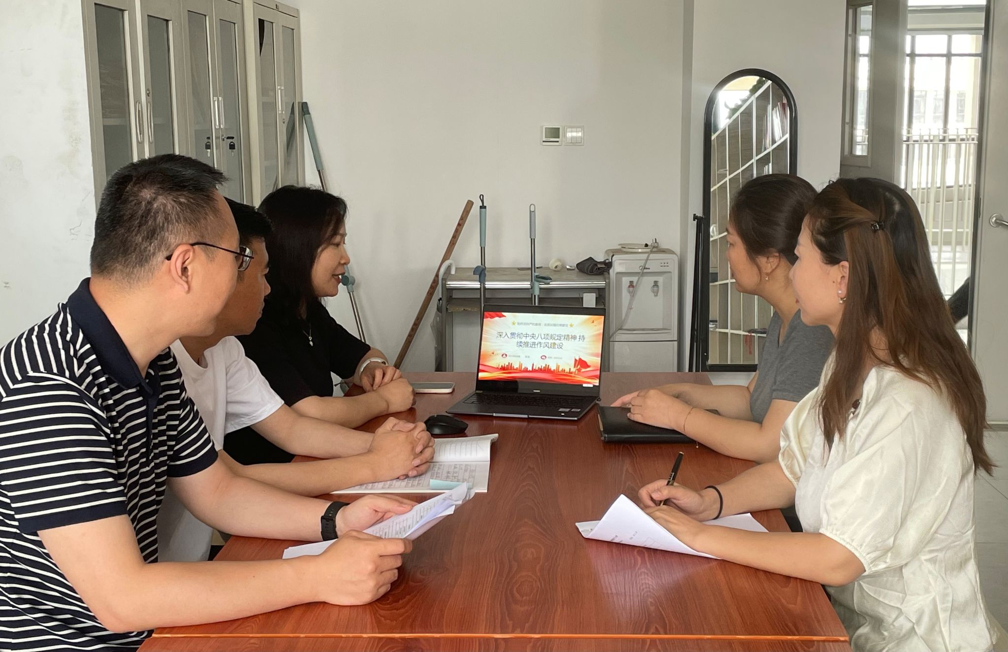 祝瑜以“深入贯彻中央八项规定精神 持续推进作风建设”为题,解读了中央八项规定的背景、内容及意义,强调其对改进作风、联系群众的关键作用。同时结合《违反中央八项规定精神典型案例》,剖析问题,警示党员抵制“四风”,并并强调大家在教学、科研等工作中发挥先锋模范作用。学习后,党员们积极讨论并表示将以此次学习为契机,以更高标准进行自我要求,持续强化纪律与责任意识,全面落实中央八项规定精神。