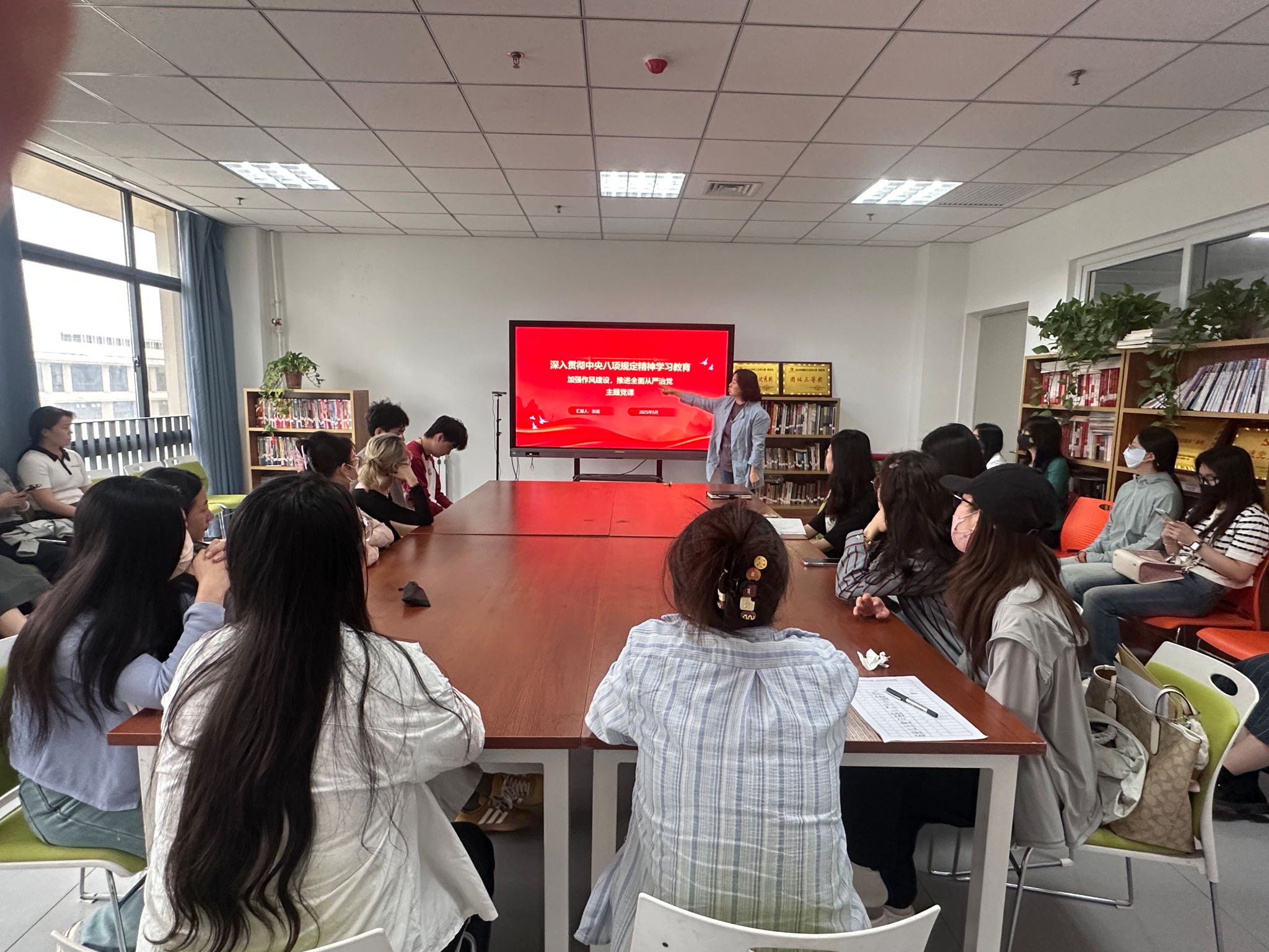 5月22日,视觉设计艺术研究生党支部组织中央八项规定精神专题党课,党支部书记张媛主讲。