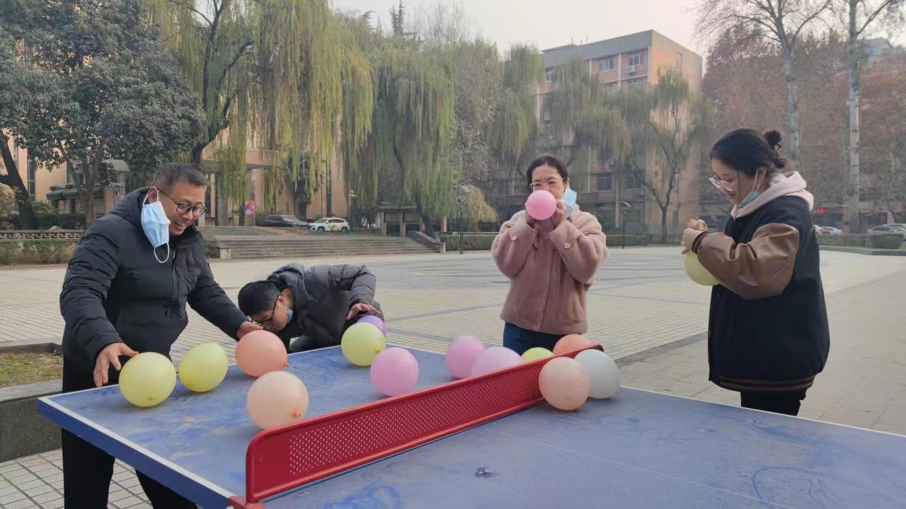 在其中的踩气球活动中,参与人员通过集体吹、运、踩气球的方式,充分释放了多日因紧张而积累的压力情绪,获得了老师们阵阵欢声笑语。