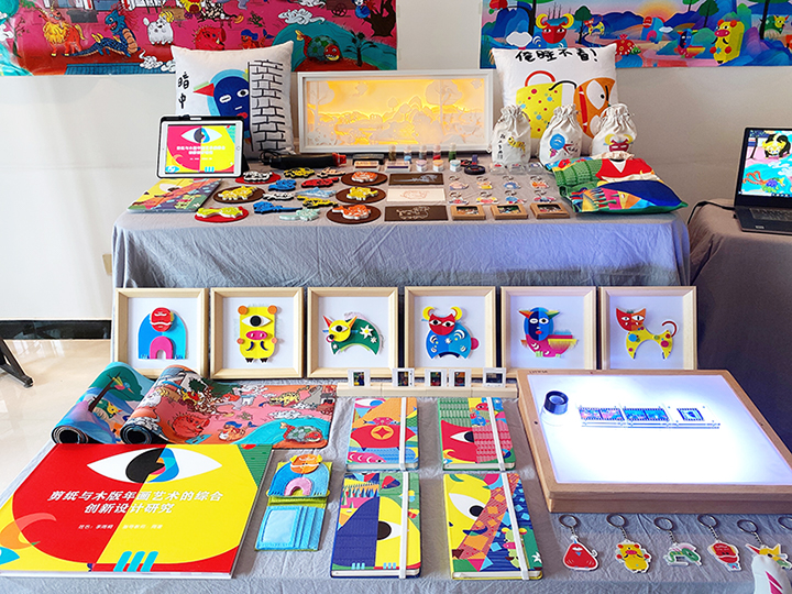 作品结合剪纸与木版年画艺术的造型特征、艺术风格,并以《山海经——西次一经》中的15个神兽造型作为题材原型,进行综合创新设计,主要从两种风格上进行尝试,第一种是以相对写实的手法,结合剪纸的线条变化和象征寓意来塑造神兽的特征,注重色彩面积之间的对比关系,采用交叉重叠的方式对神兽造型进行色彩表达,并运用晕染的手法体现了木版年画的艺术特征和“错版之美”;第二种是运用几何拼接的方式来对神兽造型进行表达,运用冷暖对比与面积对比的方式对神兽进行色彩搭配。通过作品的表达不仅对剪纸与木版年画艺术进行了融合与发展同时让那些或已蜕变、或已灭绝的远古生命以全新的面貌出现在人们的视野当中。