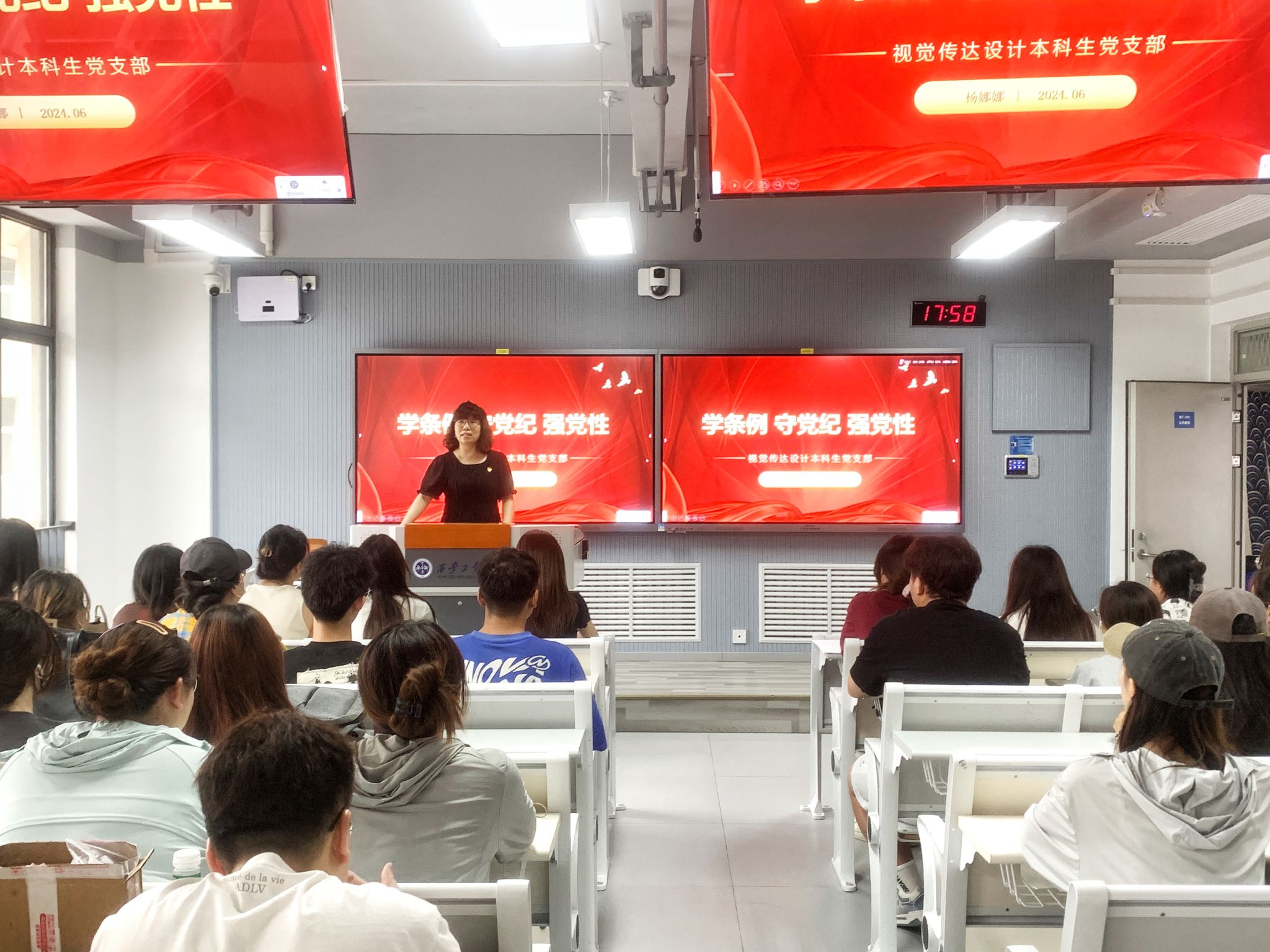 6月12日,视觉传达设计本科生党支部书记杨娜娜以“学条例、守党纪、强党性"为主题,为全体支部党员上党课,设计公司党委委员,党委副书记周倩参加。