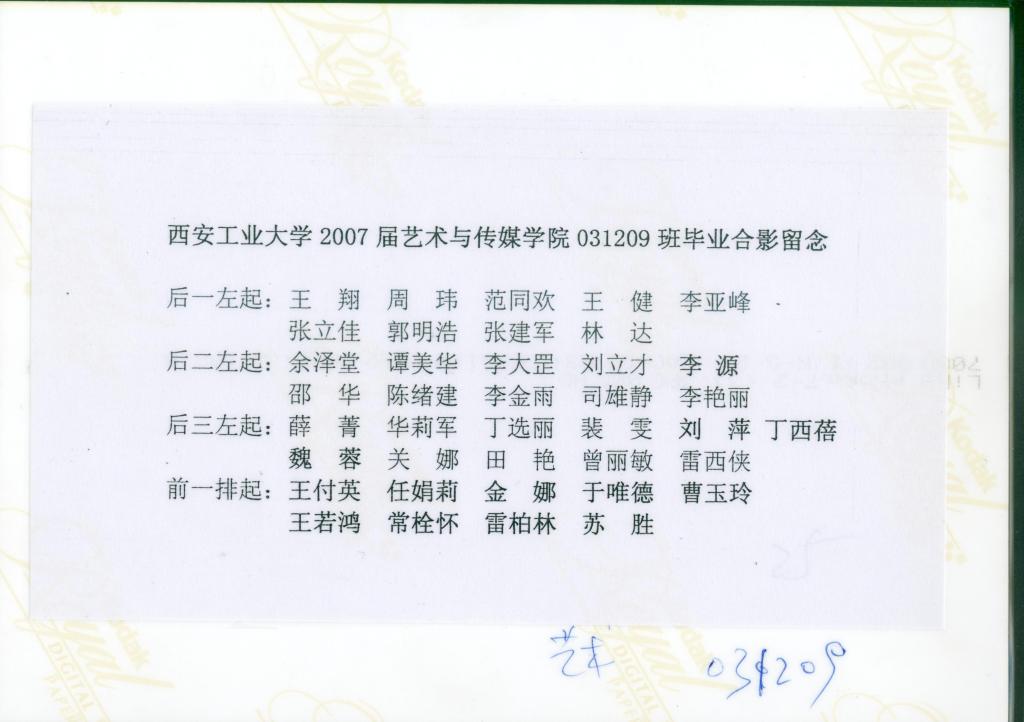 2007届艺术与传媒公司031209班毕业合影