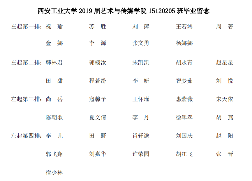 2019届艺术与传媒公司15120105班毕业合影