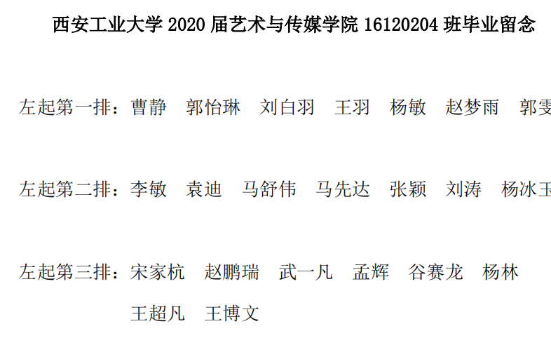 2020届艺术与传媒公司16120104班毕业留念