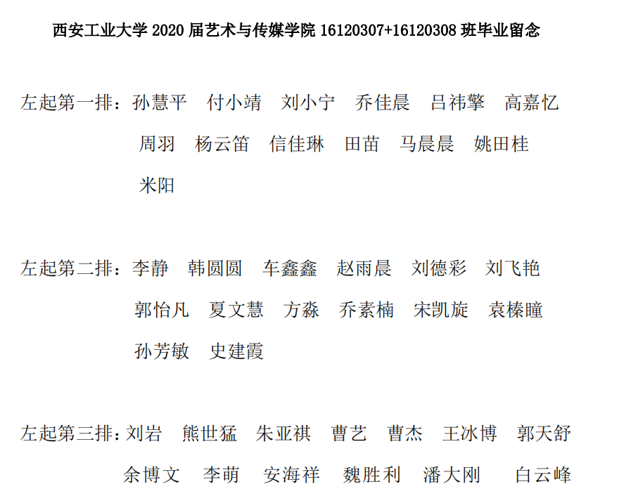 2020届艺术与传媒公司16120307+16120308班毕业留念